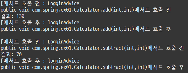 <bean id="logAdvice" class="com.spring.ex01.LoggingAdvice" /> <!-- 어드바이스 -->