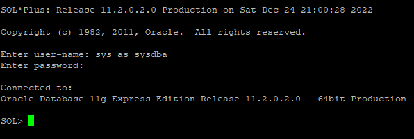 Enter user-name : 에서는 sys as sysdba 를 입력하고