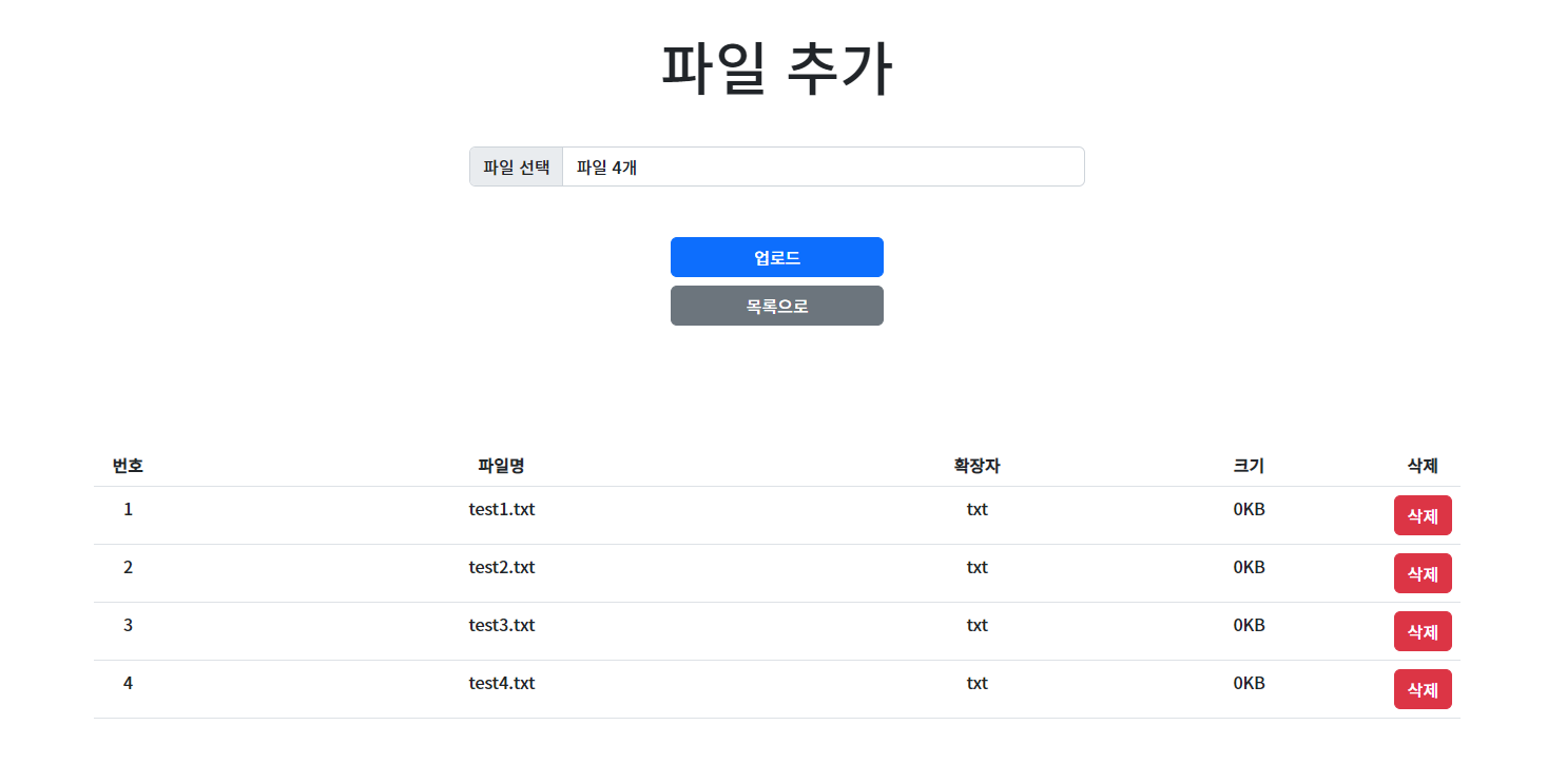 파일을 선택하면 다음과 같이 아래에 선택한 파일 정보 목록이 출력되도록 했다.