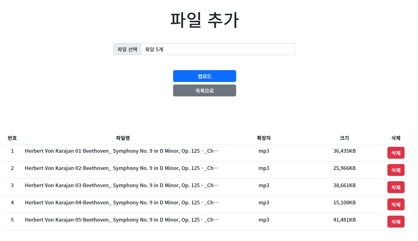 여기서는 반복문을 사용해 각 파일별 정보를 가공해 테이블에 삽입해 주었다.