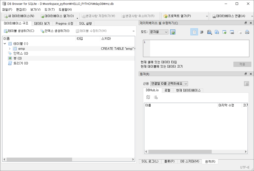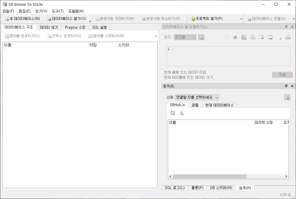 - 새 데이터베이스 : 새로운 데이터베이스를 생성한다.